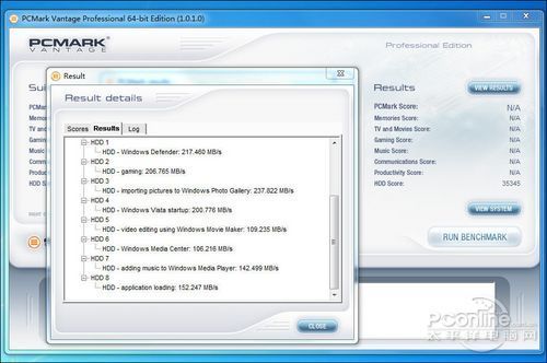 PCMark Vantage是Futuremark推出的基准测试软件,可以较好地反映出PC实际的整机性能。无论什么样的PC,都能在PCMark Vantage里通过得分了解自己电脑的各组件性能强弱。我们采用其中的硬盘测试子项来测试硬盘性能,测试结果仅供参考。
