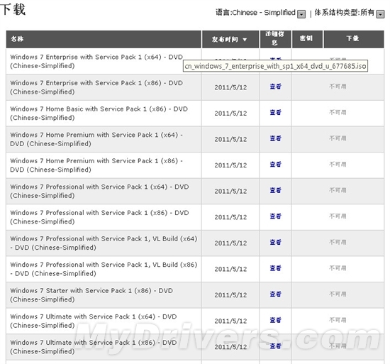微软于5月12日在MSDN重新发布了Windows 7集成SP1的系统镜像,有下载权限的朋友可以考虑下载留存。
