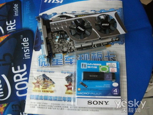 编辑点评:虽然HD5550属于低端系列,发热量低。但是微星军规二代依然配备大型铝制散热器和双风扇,解决显卡在小型机箱温度过高问题。该卡现在促销送4G索尼U盘,十分超值。