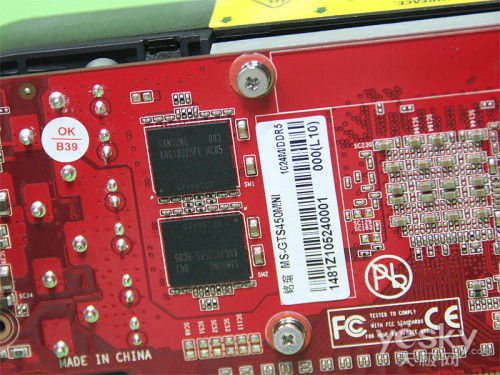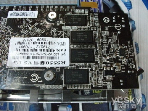 显存方面,讯景HD6450采用三星GDDR3高品质显存颗粒,128Mx16bit规格,共4颗,组成1024MB 64bit的显存规格,预设频率为625MHz/1300MHZ。