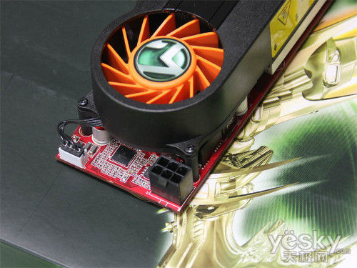 虽然采用半高板型,但铭瑄GTS450 Mini在用料做工方面依然保持相当高水准,供电均以小型化为标准设计。完整4相供电确保显卡供电充足,全部使用富士通固态电容和安森美八爪鱼mos,并专门为mos配备了独立散热片,用料非常扎实,垂直设计的6Pin电源接口能够保证显卡与小型机箱良好的兼容性,方便电源走线。