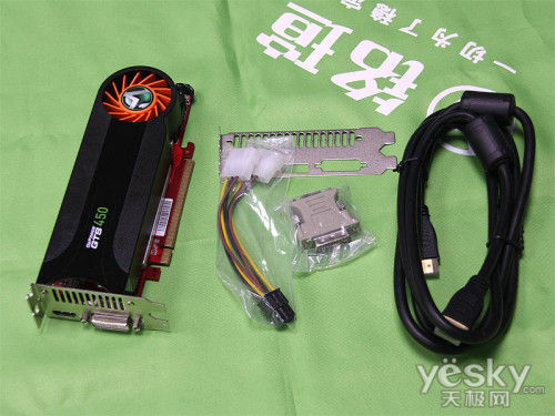 铭瑄GTS450 Mini原配小挡板,拥有HDMI/DVI两种数字接口,通过原生HDMI接口就能轻松实现高清视频音频一线输出,连接高清设备非常方便。显卡附件相当丰富,镀金HDMI线、全高挡板、VGA回转接头、6Pin电源转换线,保证显卡能够适用于不同尺寸的HTPC机箱,考虑非常周到。