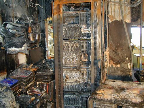 上图为一火灾后的机房照片,因为政策和保密措施等,机房着火后是不允许拍照的。这张照片也真是来之不易啊。