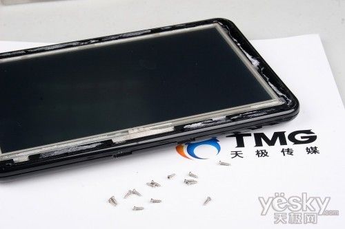 华锋E路航LH700的拆解,需要先将用胶水牢固粘贴的保护膜揭掉,才能看到螺丝钉