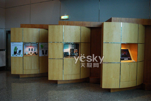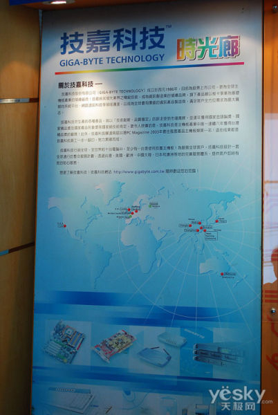 技嘉科技位于台北桃园的南平工厂大厅左右各有一块这样设计的产品展示区,展示技嘉的最新产品