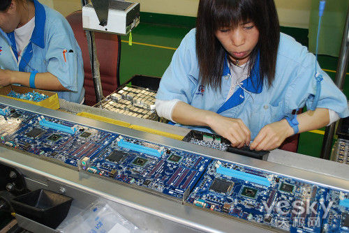 经过检测合格后的主板,被送入最后的包装车间进行包装后即可以上市销售了。包装车间同样采用了流水化作业,每个工作负责一块的工作,效率相当高。