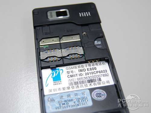 爱摩登E800手机采用的是双卡双待设计,A卡、B卡的卡槽在机身背面设计,安装SIM卡也很简洁,其采用的是一块容量为1050毫安的电池。这款手机还拥有QQ、UC浏览器、MSN、移动飞信、JAVA、电子书、电子地图、移动英语通、real播放器等功能,非常的全面。