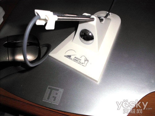 线夹的底座为硬塑料制成,而夹线部分则是不锈钢弹簧,这样的设计可以使用户方便的调节鼠标线的角度,而且分量十足,不易被鼠标拖动