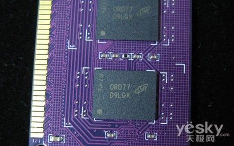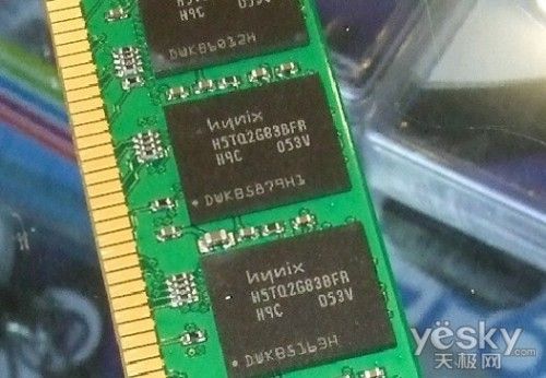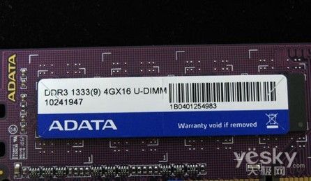宇瞻经典系列2G DDR3 1333内存采用电气性能优良的绿色散热片,内存整体做工用料优良,走线清晰,内存上面的贴片元件装贴整齐,焊接精细。而从内存标签处可以看到,该内存的CL值为9,电压为JEDEC标准的1.5V。