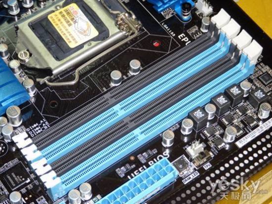 提供四条内存插槽,最高频率DDR3-2200MHz(超频),最大支持32GB容量组建双通道系统。