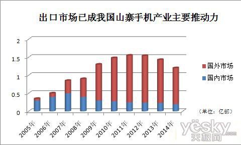 据市场研究公司iSuppli统计,自2007年起,山寨手机(G rayHandset)出货量虽然在不断提高,但是国内市场的出货量却一直在下滑。按其预测,2010年我国山寨手机整体出货量将达1.75亿部,而被国内市场“消化”的仅有2500万部左右,剩下的1.5亿部全部出口海外。“现在做这行(山寨手机)的超过2000家企业,我们的产品有60%销往海外。”李珂是深圳一家山寨手机制造商的对外贸易负责人,他表示自己与许多同行交流过,他们的内外销比例大致是四六开。