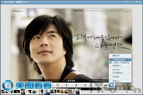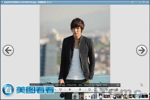 既然是欣赏各色美男,图片分辨率可不能掉链子,咱都下载的是高清大图。以前常担心一般的看图工具或配置不高的PC上看图会不流畅;现在因为有美 图看看,这些担心都是浮动了。如图02所示,高清大图浏览窗口下图片不失真,浏览切换丝毫不停顿、多样的浏览模式等,咱用起来也更顺手。