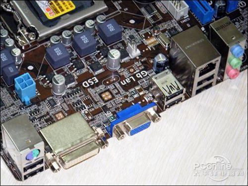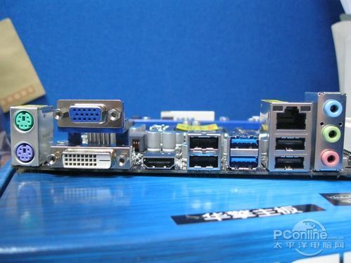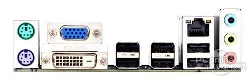 主板的I/O接口部分采用了比较实用的设计,DVI+VGA的视频输出方案可以满足大多数用户的需求,足够多的USB接口也给用户的使用提供了便利。