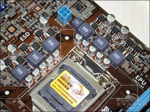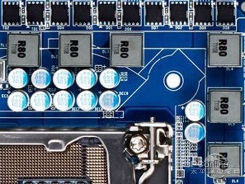 在供电设计方面,微星 PH67S-C43(B3)主板采用了大量的固态电容和封闭电感,并透过高导电聚合物电容、超导磁电感,提高主板的稳定性。