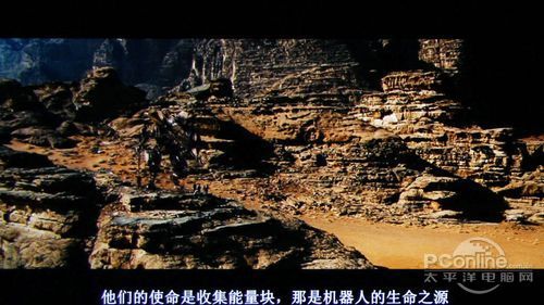 色彩复杂的场景中,很能考验显示器的色彩对比效果,从石块的陡峭痕迹以及与机器人的对比效果看来,显示器的表现还算不错。