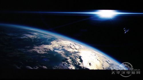 较暗的外太空环境中,体验出显示器明暗的对比,得益于高对比度的黑锐屏幕,画面的光线与黑色的背景形成鲜明对比,效果非常出色。