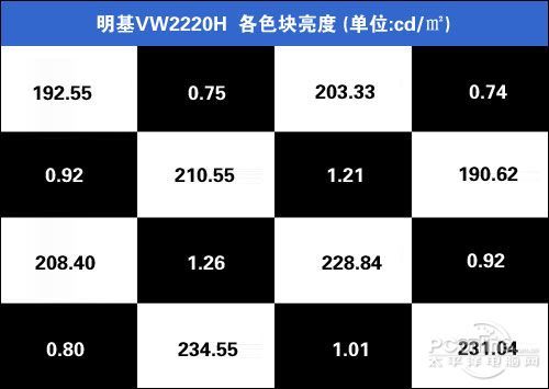 | 明基GW2240M | 212.80cd/㎡ | 2660:1 | 35.63% | 81.78% | 6470K |