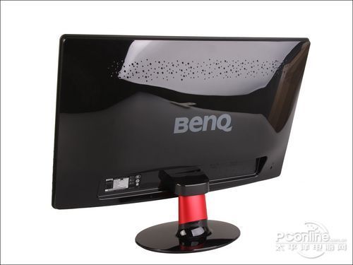 显示器背面同样保持整体的钢琴烤漆工艺,高抛光表面时尚靓丽,中央地方应有明基的BenQ标志,非常醒目,而在顶部位置设有一排不规则星点造型的散热孔,新颖独到,而且也相当实用。