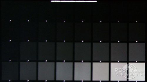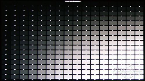 全黑检测图中,可以很好体验出显示器对过暗的场景是否出现漏光的现象。从检测图中看出,采用黑锐屏的明基GW2240M中,屏幕有出现漏光的现象,黑色亮度表现非常理想。