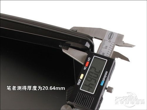 虽然明基GW2240M的黑锐屏采用结合LED背光的VA面板设计,但整体的厚度尚不至于达到轻薄产品的行列,而笔者测量其边框厚度大约为20.64mm。