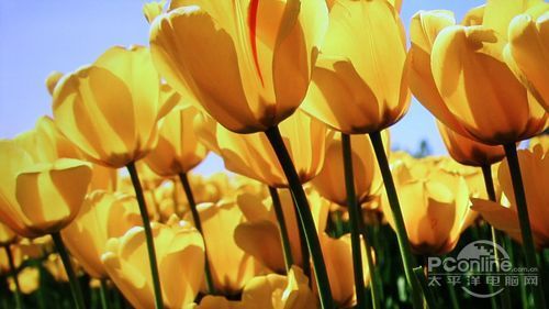 黄色效果图的表现中,显示器的黄色感染力强,总体画面比较柔和,花瓣层次分布鲜明,花柄的绿色效果有些偏暗,但总体效果还算不错。