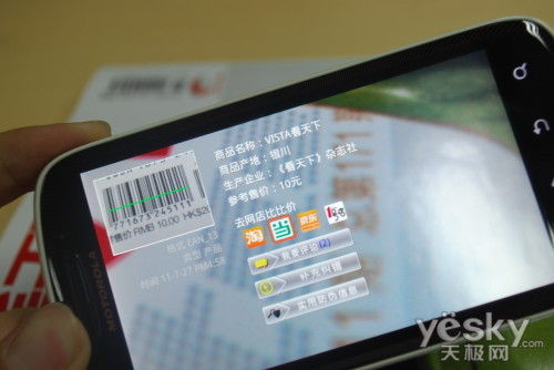 识别完毕后会显示产品名称、产地、生产企业和零售价等相关信息,并列出4个网店方便用户进行比价。点击网店图标会打开浏览器进行价格的查询,用户可以自行比较网店间的价格。这样一来,只要随身带着装有快拍的手机,就可以随时了解身边商品在各家网店的价格,同时也可以识别火车票上的二维码,辨别真伪。