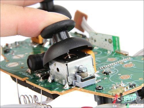 而手柄上的副方向键则被固定在上层外壳上,并在结构加入了弹簧设计,增强方向键的操作性。