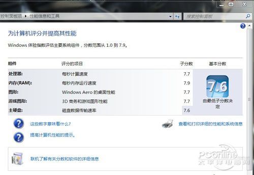 超频至1020/4300MHz后,windows7 64bit旗舰版系统评分为7.7。