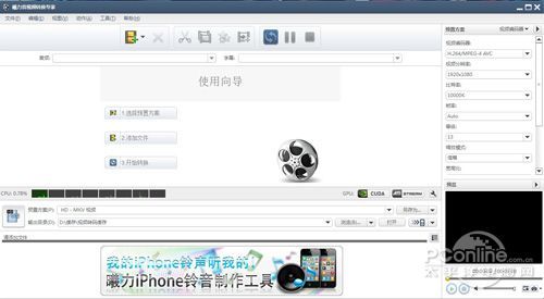 视频转码测试: 随着高清视频、手持影音设备的逐渐普及,越来越多的用户在日常生活中都接触了视频编解码的转换。对于许多用户而言,视频的转码是一项非常繁琐的事情,因为许多软件所转换的格式非常有限,同时转换的效率也是非常低下,因此一款真正全能的高效视频转换软件正被用户们所期待。 曦力音视频转换软件是首款支持CUDA加速技术的软件,在研发过程中与全球视觉计算技术的行业领袖NVIDIA公司展开了密切的合作,在最新版本中已经成功支持NVIDIA CUDA计算架构,在安装有NVIDIA显卡的电脑时,其视频转换速率将提高3-4倍。