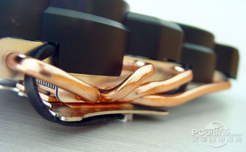 网上有文章表示热导管与底座采用HDT直触式设计,但笔者发现只是普通的穿入式接触设计而已。