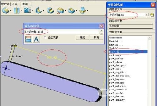 步骤一:打开小齿轮轴,选择要变量的尺寸,插入变量,点击确定。如下图所示: