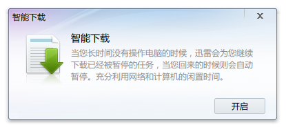 【开启智能下载,迅雷将会在您长时间没有操作电脑时,为您下载处于暂停状态的任务,当您回来时任务将会自动暂停】