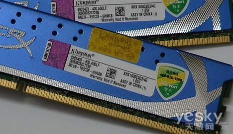 与前一代骇客身条相比,这款产品的散热片上又加上了散热孔,能够在运行中发挥更好的散热功能。另外这款内存的型号为 KHX1600C9D3/4G,适用于台式机。内存的频率为1600MHz,针脚为240-Pin DIMM,电压为1.65V,延迟为9-9-9-27。