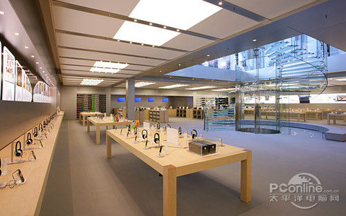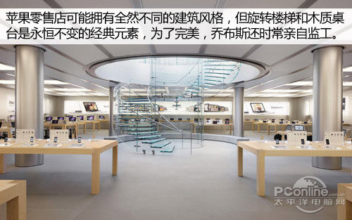 尽管每一家苹果零售店的建筑风格都可能不一样,但是有一些堪称经典的元素你在每一家零售店都可以看到,比如旋转向上的玻璃楼梯,以及极富书香气得木质桌台。实际上了为设计出做好的商店,苹果的零售执行官Ron Johnson常常亲自指挥,而乔布斯时常扮演监工一角。