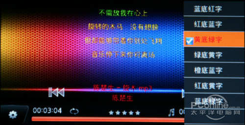可欧X300内置了歌词同步播放功能,并且歌词的颜色可以自主设定,满足了用户各种不同的需求。