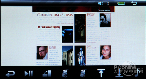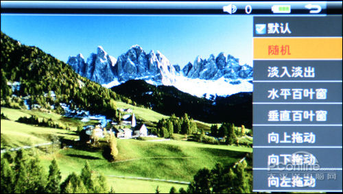 可欧X300支持高清晰JPEG、GIF、BMP等格式图片浏览,其功能细分相当具体,支持幻灯片播放、缩放旋转、缩略图、播放间隔、变换图片大小、播放顺序等多种图片浏览功能。
