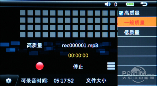 可欧X300提供的录音功能还相当体贴加入了音质的选项功能。