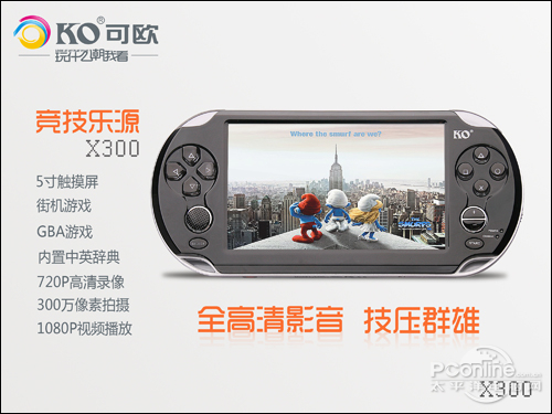 【PConline 资讯】目前的市场上的大部分电子产品都趋向多元化功能模式发展,单一娱乐模式已经无法满足玩家的多层次需求。而作为可欧旗下的游戏掌机新品,X300除了能够广泛兼容街机、GBA模拟游戏之外,还通过5.0英寸大屏幕、1080P全高清解码、300万像素DC/DV拍摄、PDF/TXT格式文档阅读等多项功能配置优势,向广大玩家呈现酷炫、激情的新鲜娱乐体验。下面,评测人员将通过对可欧X300的全面功能评测,让大家感受一下游戏掌机所带来的愉悦魅影。