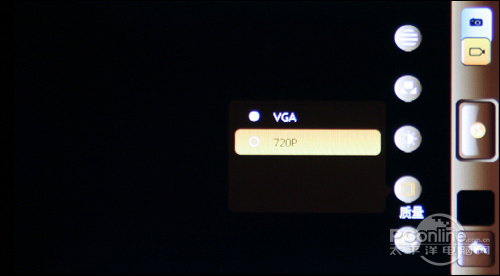 DV功能的各项按键的操作与DC功能相仿,不同之处在质量按键上,DV呈现出的可供选择是VGA和720P。