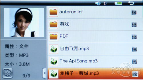 可欧X300的音乐文件采用了竖向的陈列文档方式,这样的好处是可以让用户一目了然,带来更直观的视觉角度。