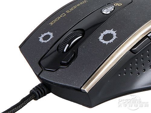 鼠标的后部十分的宽大,可以很好的托住用户的手掌。从后部我们可以看到枪孔的图案给它增添一丝战斗的气息,仿佛在叙说它是一款游戏鼠标。