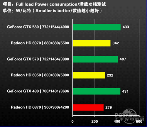 其实我们前面已经提到过了,AMD早在Radeon HD 3000时代就已经放弃了大核心、高功耗、高热量的设计思路,转而向性能/功耗比得黄金点进行切入。随后的Radeon HD 4000、5000、6000一系列产品均采用了相同的市场策略进行应对,加上AMD的海量流处理器集群的突飞猛进发展,让Radeon显卡不仅保证了飞 跃性的性能提升,同时在功耗控制方面也有出色表现。