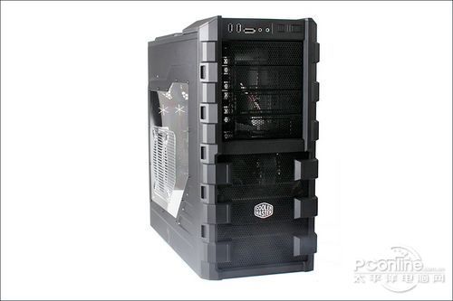 酷冷至尊 HAF 912至尊版机箱整体采用了黑色的加厚铁面板设计,其中部分冲孔网采用了塑料设计。整个机箱黑色的配色配合前面强悍刚健的方块线条设计以及正面冲网设计使得整个机箱都显得十分的高端。相信这种全黑色的魅力能讨得众多高端游戏玩家的喜欢。