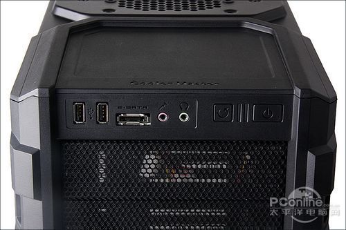 酷冷至尊 HAF 912至尊版机箱的正面接口布局在机箱正面上端,包含了双USB以及音频插孔。此外机箱还内置了E-SATA接口,方面了外接硬盘。USB接口之间保持了一定的距离,能一定程度上避免空间冲突的情况。不过前置接口并没有内置读卡器,有点遗憾。