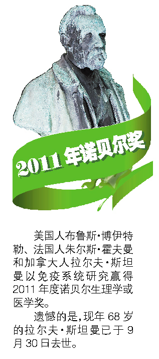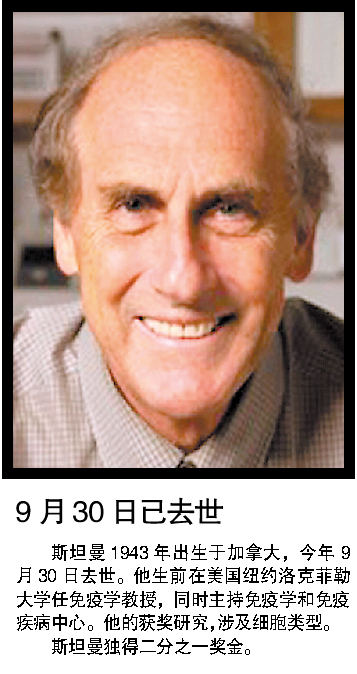 斯坦曼所作贡献,是发现免疫系统中的“树突细胞”及其在适应性免疫反应、即以自身调控方式适应并清除体内微生物过程中的作用,构成免疫反应的后续步骤。