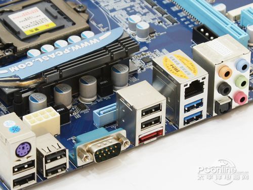 翔升金刚P67T-PRO通过增加第三方芯片,实现了对E-SATA的支持,方便E-SATA移动硬盘用户;同时主板还支持COM,方便COM接口设备,这在高端主板上并不多见。
