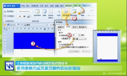图3中“页眉和页脚”是在将进入页眉页脚编辑区后出现的临时选项卡,表格样式、表格工具等选项卡都是在插入表格后出现的,都是在特定的内容出现或者插入时才有的。要适应在WPS Office 2012下这种命令集中化细节的设置。