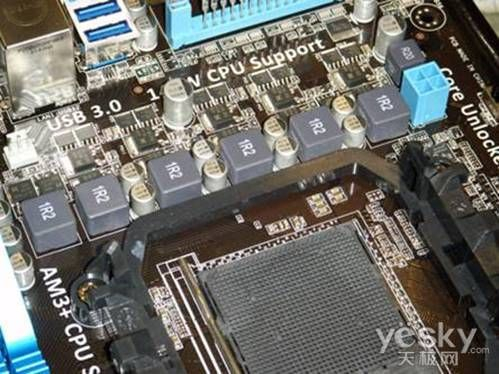 华硕M5A87主板采用黑色的处理器底座设计,这也是AM3+的一大特点。主板基于最新的AMD 870+SB850芯片组,可以对最新的AM3+处理器和AM3处理器进行支持,支持数据传输速率高达5200MT/s的HyperTransport3.0系统总线。