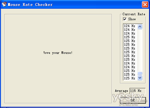 性能测试方面,小编采用了Mouserate回报率测试软件,测得雷柏3300p的平均回报率为125Hz,处于主流水准,而且回报率变化不大,可以为用户带来稳定的性能表现,满足主流用户的使用需求。