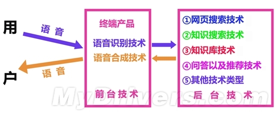 首先,在前端(面向用户)的,是用户交互技术(从表象来看,也就是我们平时所说的人机交互),主要是语音识别及语音合成技术。语音识别技术把用户的口语转化成文字,其中需要强大的语音知识库,因此需要用到云计算。而语音合成则是把返回的文字结果重新转化成语音输出,这一步理论上本地就能完成。